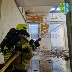 Aufgrund eines Dachstuhlbrandes wurden wir zu der bereits bestehenden Einsatzstelle nachalarmiert. Vor Ort stellten wir einen Trupp unter schwerem Atemschutz, der etwa eine Stunde – mit Pausen dazwischen – in sicheren Bereichen des Gebäudes arbeitete. Dabei konnte der Trupp mehrere Glutnester bekämpfen.